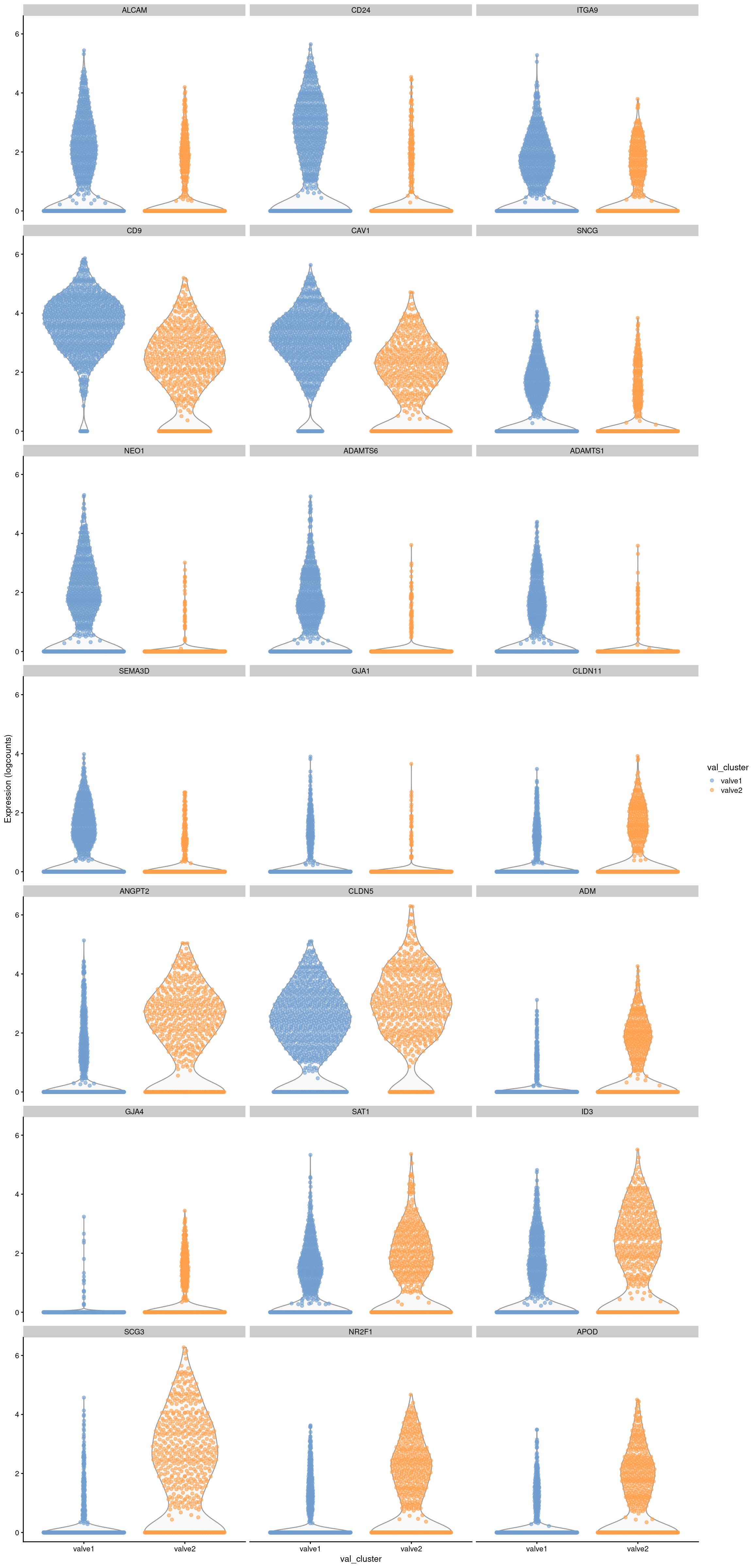 levels(sce_val$val_cluster) <- c("valve1", "valve2")Cluster plot